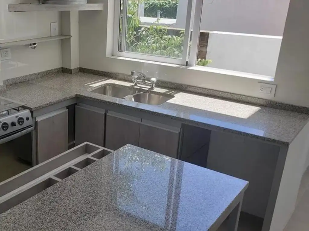 _ El mismo posee cocina comedor equipada con muebles bajo mesada y una gran isla central integrada al living, dos dormitorios con piso parquet y un baño completo.