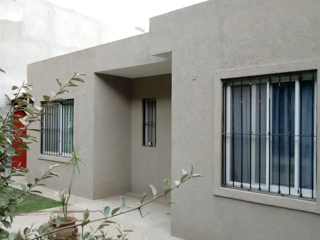 La casa cuenta con Living-comedor con piso de porcelanato, cocina-comedor amoblados, dos dormitorios , uno en suite, 2 baño, lavadero, galería-cochera pasante para 2 vehículos, parrilla, patio parquizado. Portón de hierro corredizo. Aberturas a medida en aluminio blanco modelo Rotonda con rejas. Techo de losa. Pileta de fibra.
