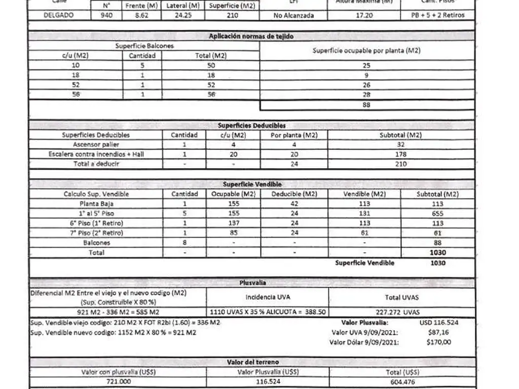 DELGADO AL 900 - 8,66 X 25M - 1.030M2 VENDIBLES - USAM