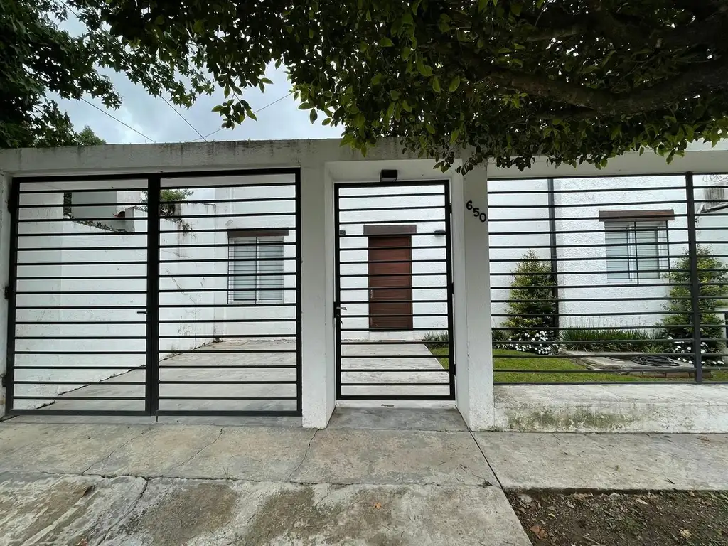 Cuenta con 3 dormitorios con placares (1 en suite con vestidor, jacuzzi y balcón), cocina, living-comedor, sala de estar, escritorio, lavadero, galería, quincho con baño y pileta.