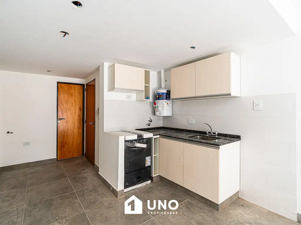 Amplio ambiente único externo a estrenar con la cocina equipada, balcón terraza al frente y baño.