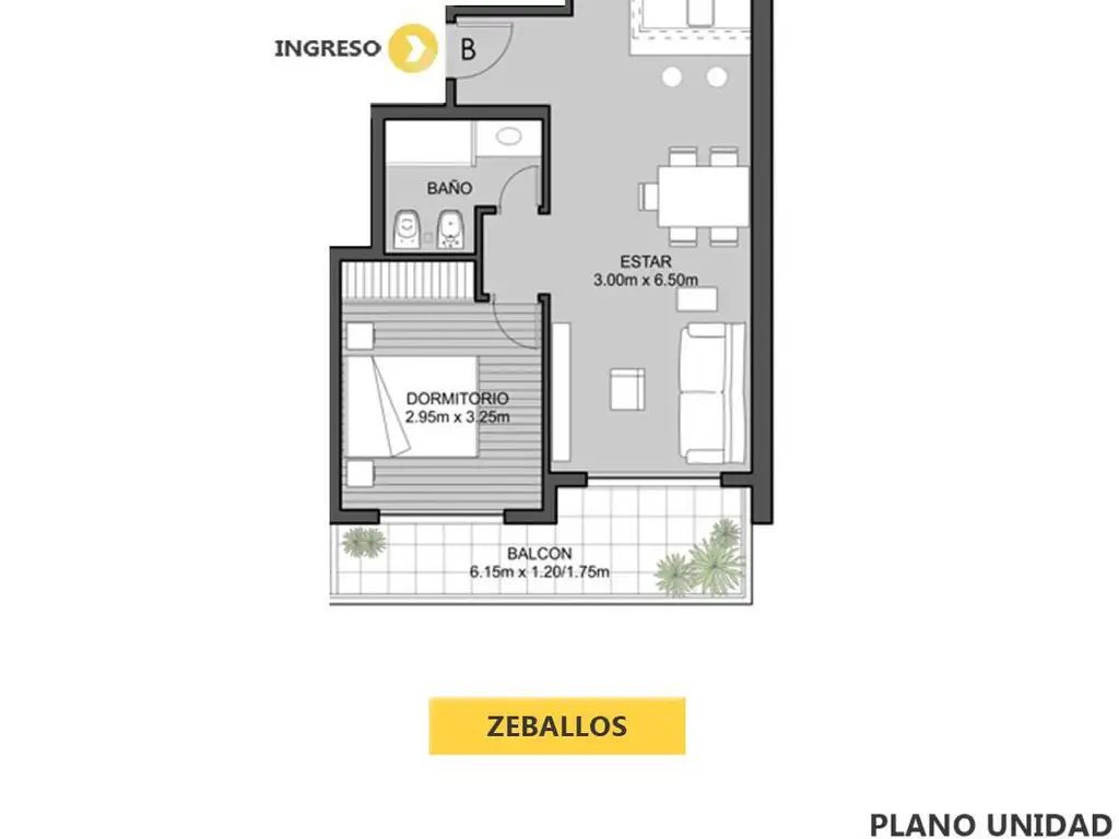 las aberturas.; Puertas placas reforzadas enchapadas en madera y lustradas, con herrajes de primera calidad.; Frente de placares de piso a techo con guías de aluminio. No incluye interiores de placares.; Pisos porcellanatos en estar, cocina, baño y balcón, y pisos flotante en dormitorios.; Zócalos de madera lustrados en todos los ambientes.; Muebles de cocina completos: bajo mesada, alacenas, mesada en granito gris mara o similar, pileta de acero inoxidable Johnson y grifería monocomando FV. Espacio y conexiones para lavarropa.; En todos los departamentos de un dormitorio, quedarán instalados, la cocina, el calefón.; Instalación de cañerías para telefonía y TV cable en todos los ambientes.; Hall de ingreso con frente vidriado de seguridad 3+3, detalles en madera y pisos de porcellanato.