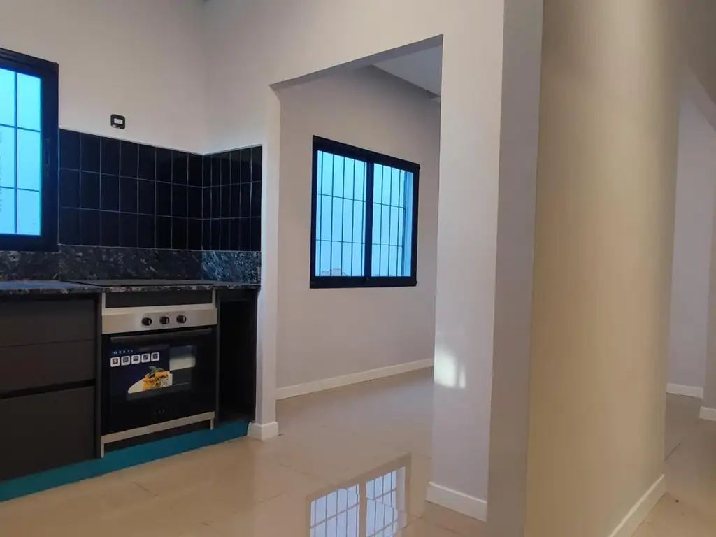 Garaje cómodo con posibilidad de incorporarlo a los ambientes, cocina con amoblamientos bajo mesada, anafe y horno empotrado, comedor diario, ante baño, baño super amplio con ducha. Lavadero. 2 Dormitorios con espacios para placard.