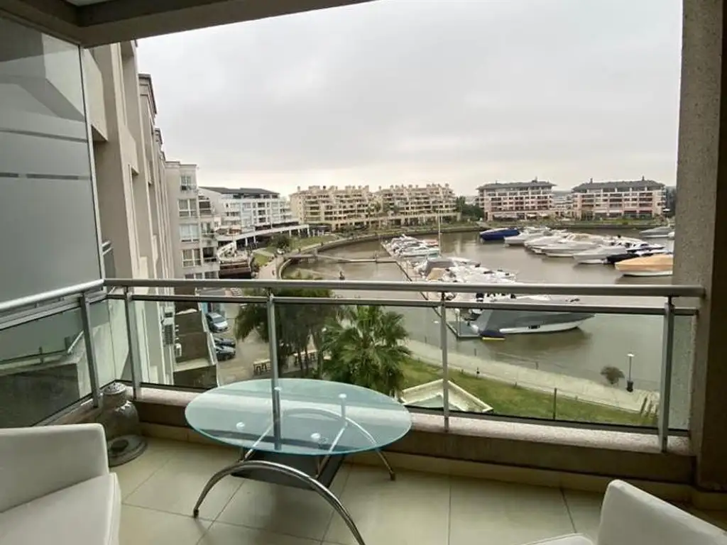 habitación principal en suite, balcón con vista a la bahía, living, comedor cocina. cochera cubierta.