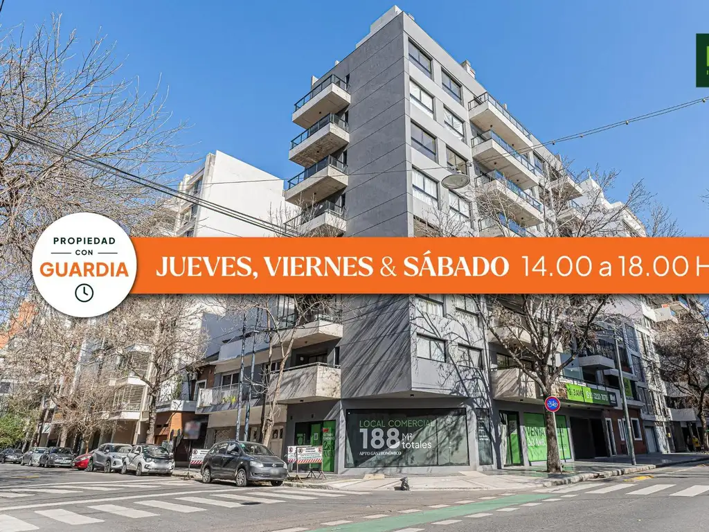 Destacado Local comercial Apto Gastronómico de 188m2 totales, Superficie comercial libre en PB de 116m2, que contará con 22m2 de vidriera, y Sanitario adpatado para personas con Movilidad reducida.