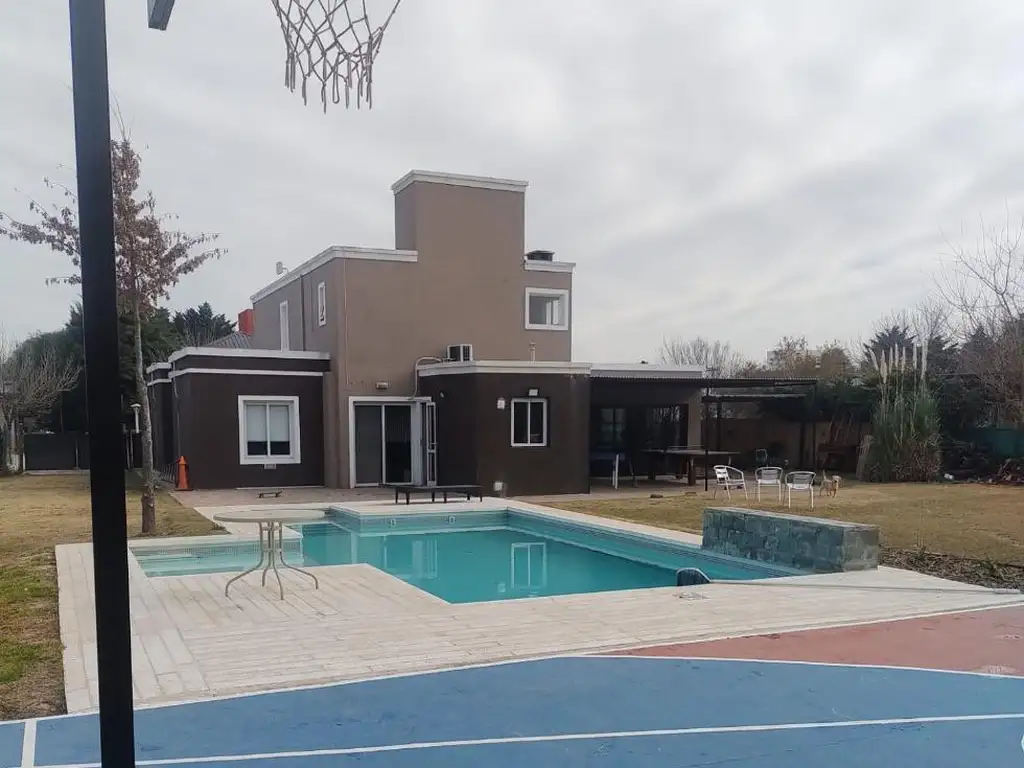 - Patio verde con cancha de básquet y futbol