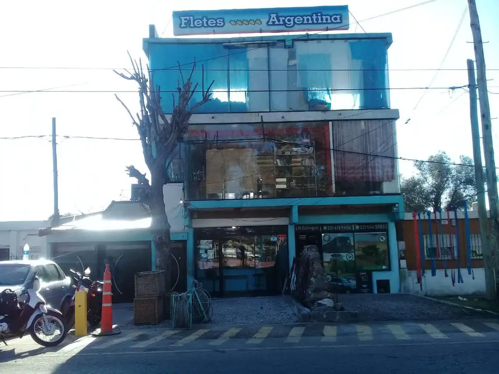 _ Edificio comercial en venta ubicada sobre calle 122 y 531 (Ensenada, Buenos Aires). Desarrollada en tres plantas, con disposición frente y orientación norte. Posee en planta baja dos locales. En primer piso cuenta con dos departamentos monoambiente. En el segundo piso cuenta con un tercer monoambiente._ Cochera descubierta con capacidad para dos autos.