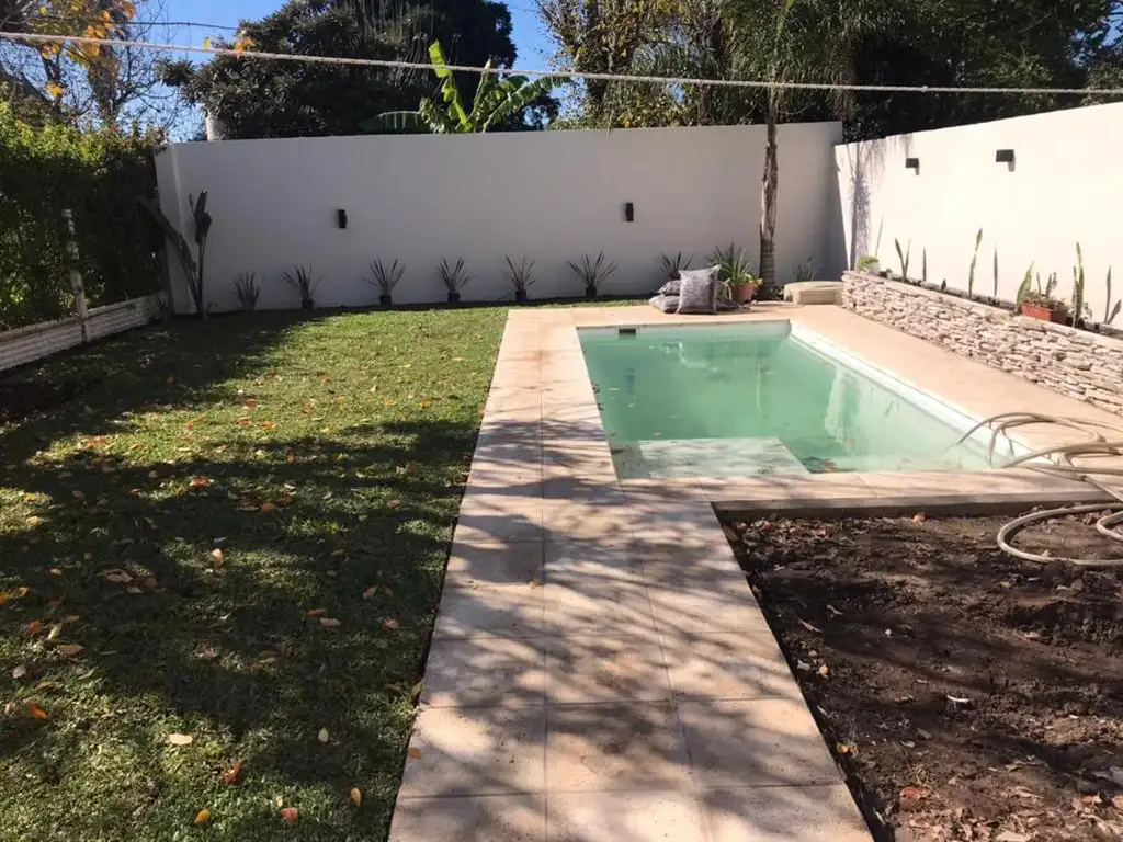 Descripción: Casa desarrollada en una planta. Ingreso por living, cocina comedor, baño de recepción. En el íntimo cuenta con dos dormitorios y baño completo. Jardín parquizado, parrillero y piscina.