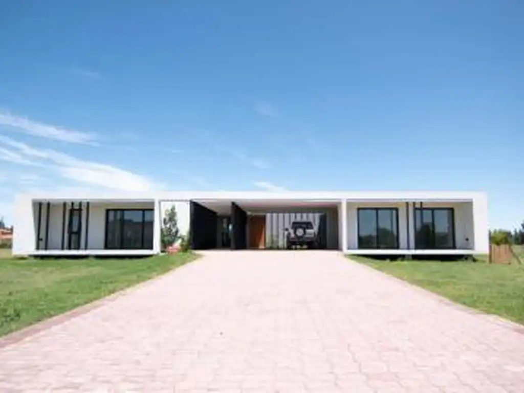 NUEVAS CONDICIONES, EXCELENTE OFERTA, Casa a estrenar en barrio privado Fincas de San Vicente, Golf, Lote 42, zona sur. Total del lote 2726.24m2Fincas de San Vicente es un gran emprendimiento inmobiliario de 675 hectáreas, distribuidos en siete subsectores: Chacras Urbanas I, Chacras Urbanas II, Golf, Spoting Club, Equitación, De la Laguna y Polo. Está localizado en la ciudad de San Vicente. Se encuentra a 20 minutos de la Av. general Paz y 50 minutos del centro, por Autopista Ricchieri, Av. Jorge Newbery, Ruta 52.Casa de 315m2 cubiertos y 132m2 semicubiertos. 447m2 totales Acceso vehicular y peatonal semicubierto acompañado por 2 patios verdes laterales. Acceso principal por puerta pivotante de 1.20 m en madera maciza.Cocina, comedor y living unificados en un espacio integrado, iluminado por amplios ventanales DVH de aluminio negro de piso a techo que comunican el espacio interior con el entorno verde exterior y permiten también una agradable ventilación. 4 paños de vidrio corredizos vinculan dicho espacio a una galería semicubierta con parrilla que remata en una pileta de 4x8m.La cocina se encuentra totalmente equipada con muebles terminación laca blanca y abundante espacio de guardado provisto por cajones y estantes con tecnología de apertura "push".La galería (60m2) cuenta con una extensa parrilla que en su parte inferior se beneficia de un gran espacio de guardado y en su lateral con una bacha exterior y sector de apoyo en la mesada. En el piso en el sector inmediato a la parrilla cuenta con un chapón para proteger el deck de el volumen central, el área de servicio que comprende Toilette, despensa y lavadero. En las 2 alas del frente se ubican 3 dormitorios en suite; 1 de ellos master suite con vestidor, baño compartimentado con doble ducha y bañera exenta acompañada de un gran ventanal que otorga una amplia vista al exterior. Todos los dormitorios cuentan con una extensión privada.La casa se encuentra elevada mediante vigas invertidas, previniendo cualquier inconveniente de humedad de cimientos y cubierta impermeabilizada.Cada ambiente cuenta con losa radiante eléctrica y termostato individual. La cocina es eléctrica, está equipada con horno, anafe, extractor y conexión prevista para lavavajillas.El revestimiento de los pisos es "Ilva simil madera" y porcelanato "soho lounge" 60x60.Todas las griferías son FV, los artefactos son Ferrum y las bachas son Ferrum y Johnson.Las carpinterías tienen una altura de 2.60 m con perfilería de aluminio Alcemar, y cuentan con un sistema DVH que provee mejor aislamiento térmico y acústico y una excelente iluminación natural