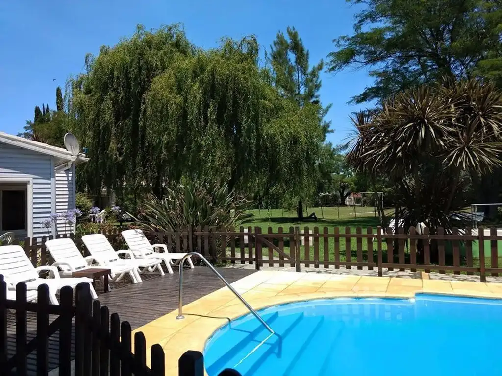 _ Complejo de 5 cabañas en venta ubicado sobre calle Mercedes entre Tandil y Junin (Chascomus, Buenos Aires). Desarrolladas en una planta, con disposición interna y orientación norte. Poseen cocina equipada con muebles bajo mesada, living comedor, dos dormitorios, un baño completo y están equipadas con aire acondicionado frio/calor. Amplio patio con galeria, parrilla, pileta y jacuzzi. El complejo cuenta con una recepcion con sauna y jacuzzi así como también una dependencia de servicio.