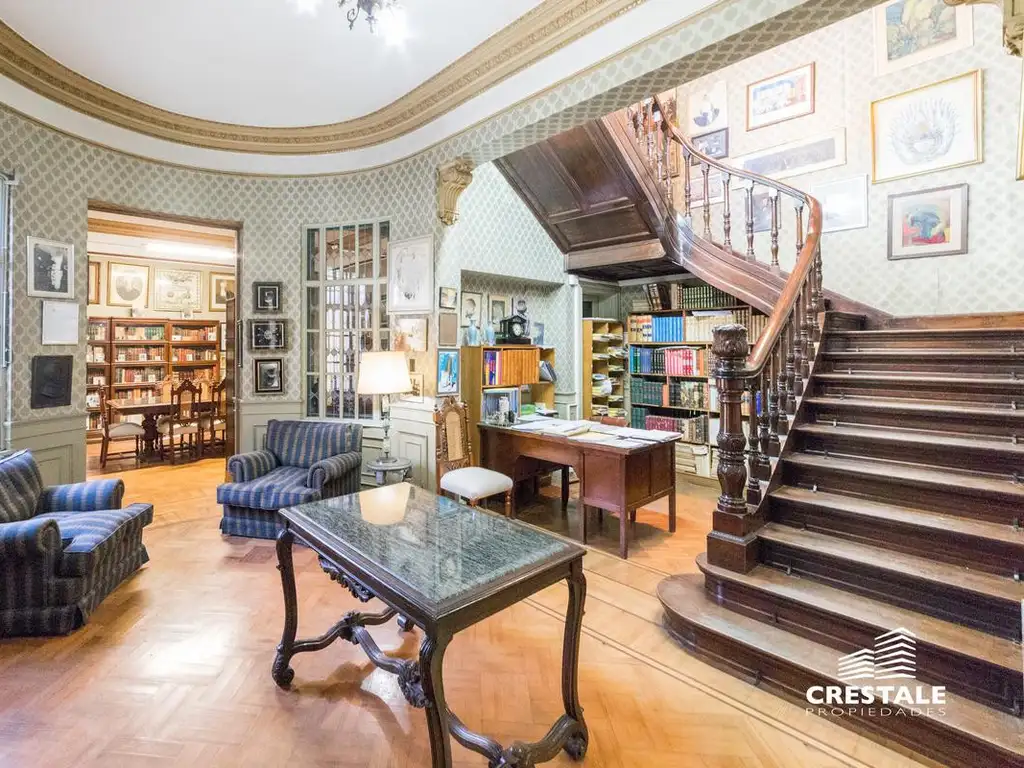 Se accede por un gran portón de hierro. La casa se desarrolla en 2 plantas a través de una escalera de madera de gran presencia arquitectónica que distribuye la propiedad desde el hall principal. Cuenta luego con varias habitaciones/salas en ambas plantas que permite gran independencia de usos, y tiene una parte de servicio bien sectorizada, que cuenta con su escalera secundaria. Techos bien altos y ambientes luminosos destacan la propiedad.