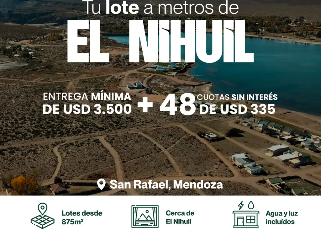 Terrenos desde 875 m2 en El Nihuil, Obras de luz y agua por contrato,