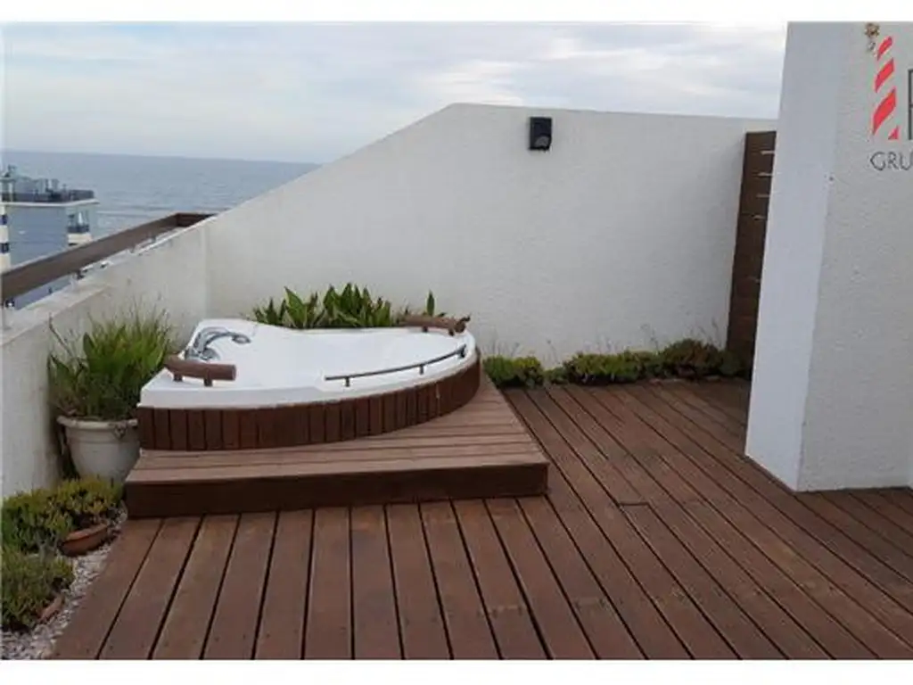 Planta alta con deck solarium con jacuzzi, estar vidriado con ventanas corredizas, 2 parrilleros, solarium y terraza con camastro. Barbacoa principal para 12 personas con horno a leña, heladera.