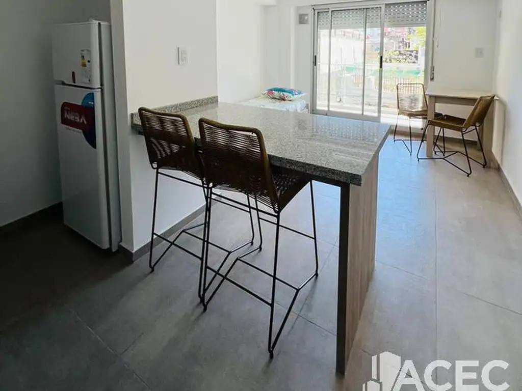 Se compone de un espacio único con cocina integrada y con barra desayunadora , con salida a balcón