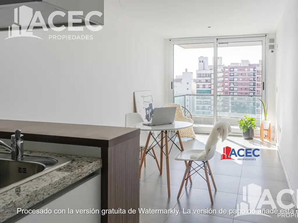 Al ingresar a la unidad nos encontramos con un amplio living comedor con cocina semi integrada, la misma cuenta con barra desayunadora y el acceso al balcón terraza,