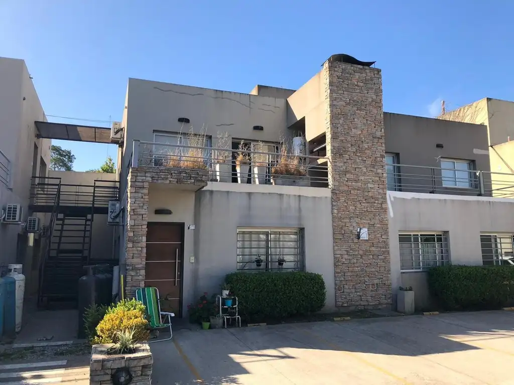 Amplio balcón terraza con parrilla con espacio de desagüe para el lavarropas.