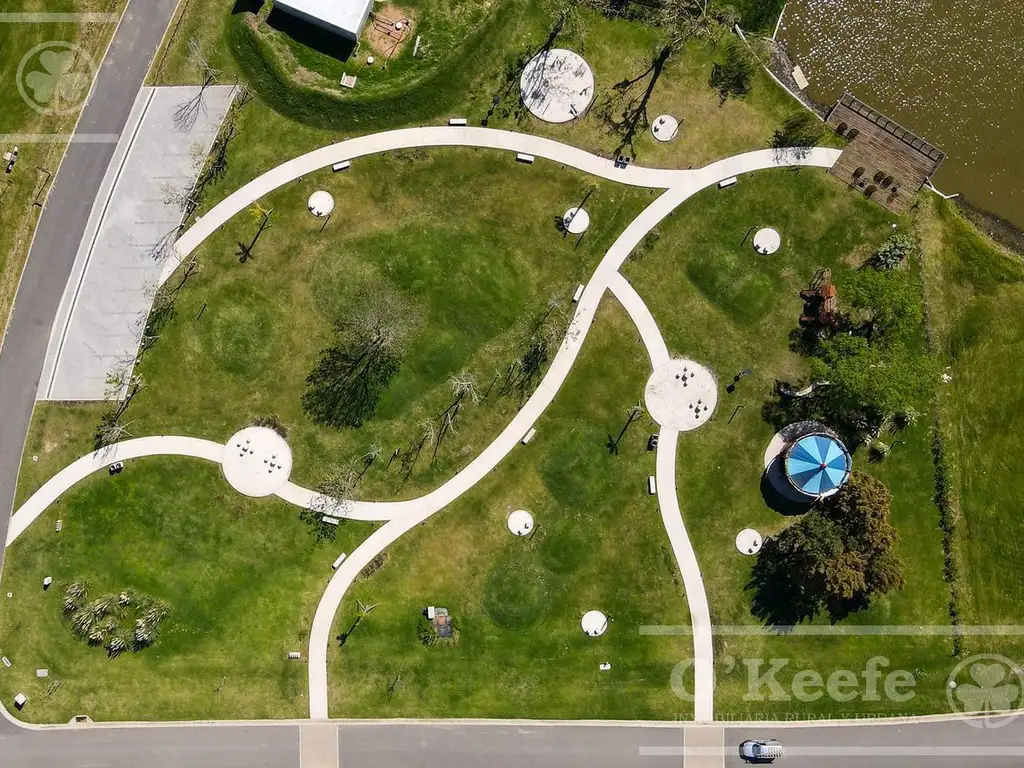 Plazas en las cabeceras de las lagunas con juegos infantiles.