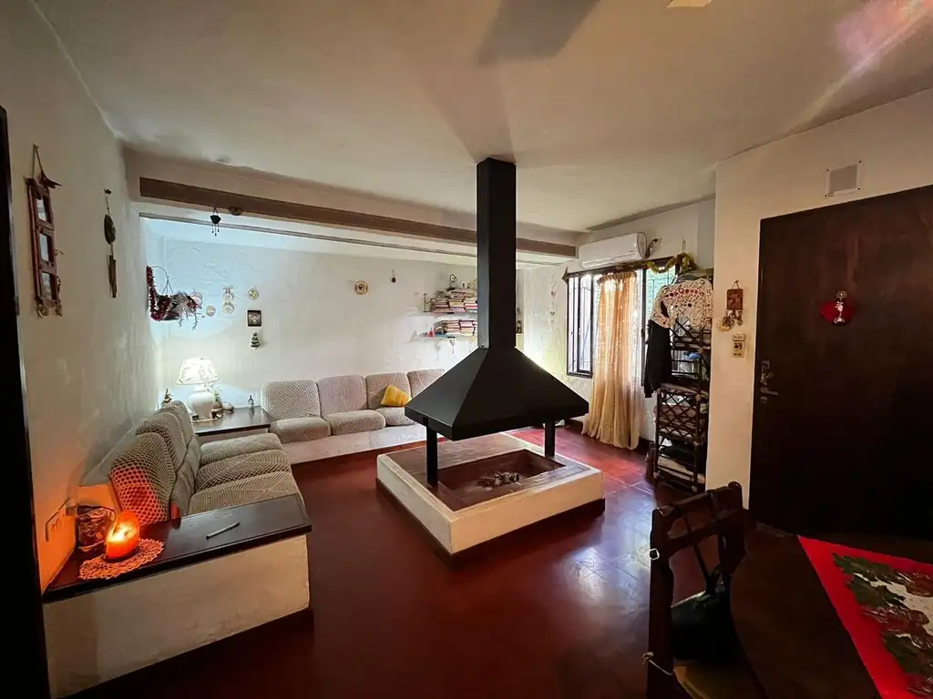 -Living-comedor con hogar flotante, sillones fijos con baulera.