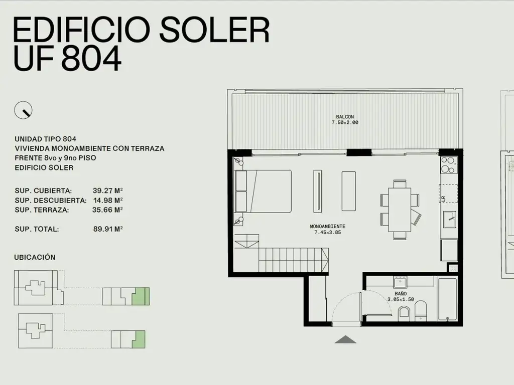 804 8PISO FRENTE monoambiemte de 35m2 cubiertos con balcon de 15 y terraza propia de 34 m2 en piso 9
