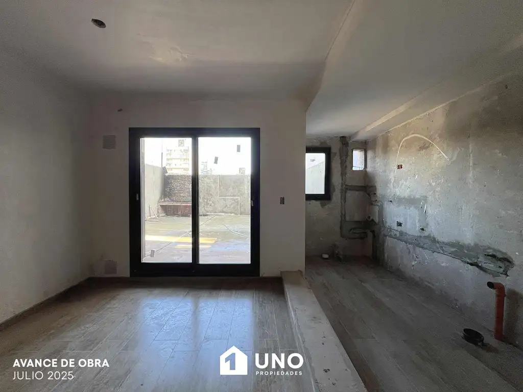 Departamento con gran patio exclusivo de 56 m2, entrega en Abril de 2026. Cuenta con puerta blindada de ingreso, estar/comedor con espacio de trabajo incorporado, cocina semiseparada con conexión para lavarropas y ventilación natural, un dormitorio con placard, patio al contrafrente y baño completo.