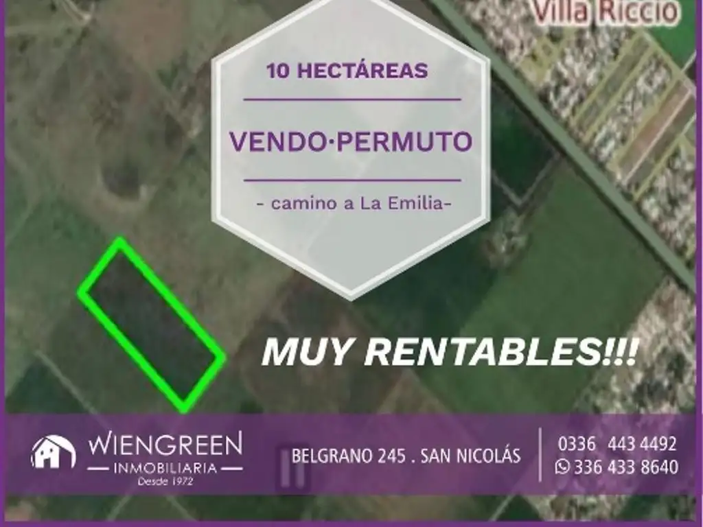 VENDO O PERMUTO 10 HAS AGRICOLAS EN CAMINO A LA EMILIA