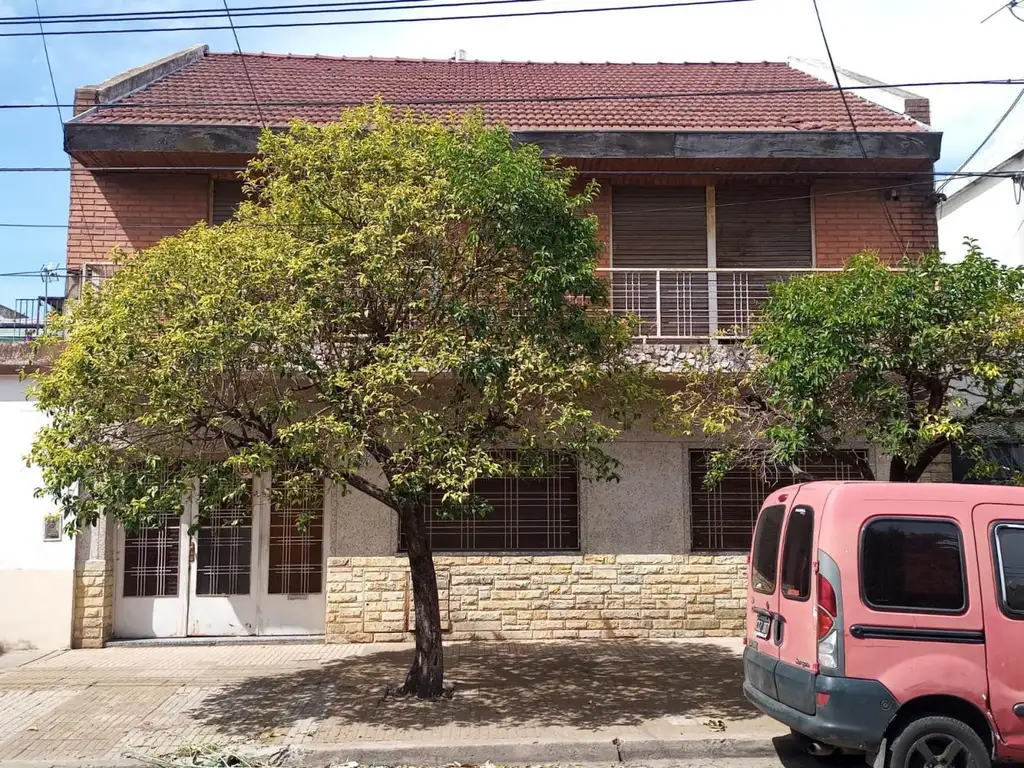 En P.B. cuenta con garage pasante para 3 autos, la casa de P.B. tiene 50 años e antiguedad aprox. la distribucion es gran living comedor, cocina comedor, dos dormitorios y baño, amplio patio con cuarto de guardado.-