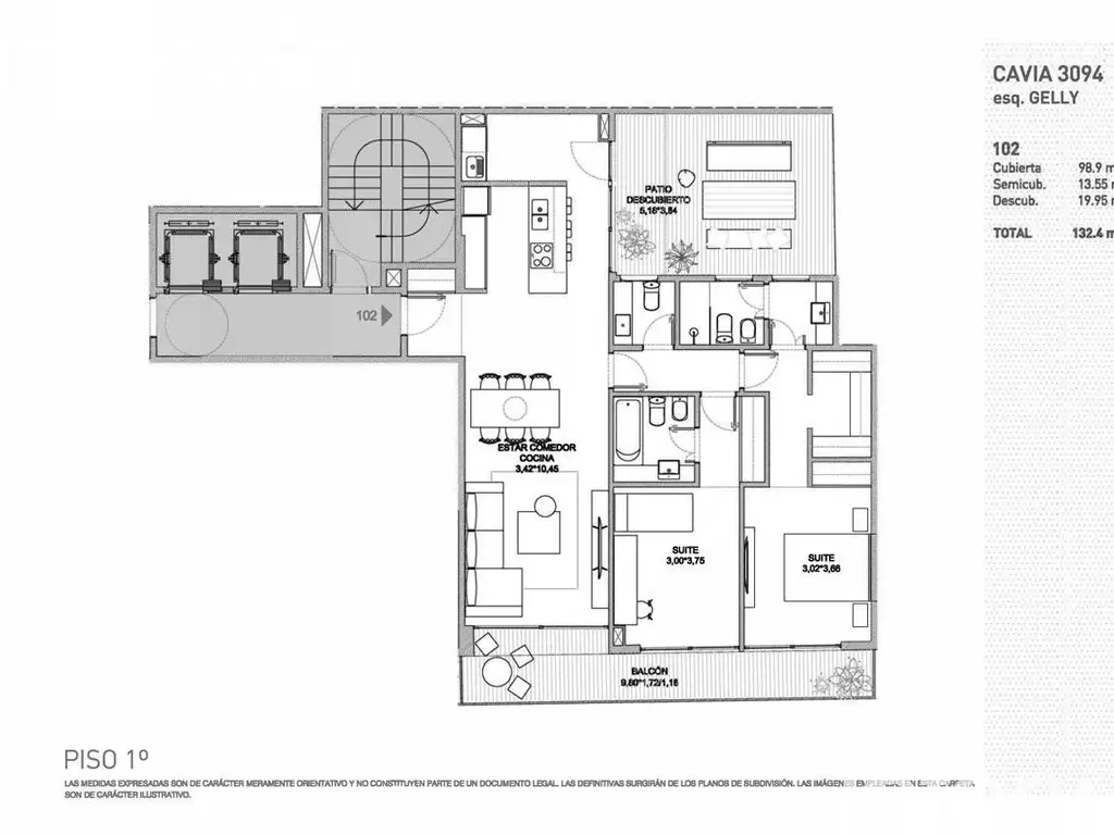 Todas las imágenes, planos, descripciones, y características indicadas son meramente referenciales e ilustrativas y podrán ser modificadas sin previo aviso. Las superficies indicadas son estimadas. Las superficies y medidas definitivas surgirán del plano de mensura final aprobado oportunamente por el GCBA. Las fechas de inicio de obra o posesión son estimadas, podrán ser reprogramadas por la Dirección de obra y dependerán a su vez de un proceso de aprobaciones municipales u otros organismos intervinientes. Los precios indicados podrán modificarse sin previo aviso. El interesado deberá realizar las verificaciones respectivas previamente a la realización de cualquier operación, requiriendo por sí o sus profesionales las copias necesarias de la documentación que corresponda.