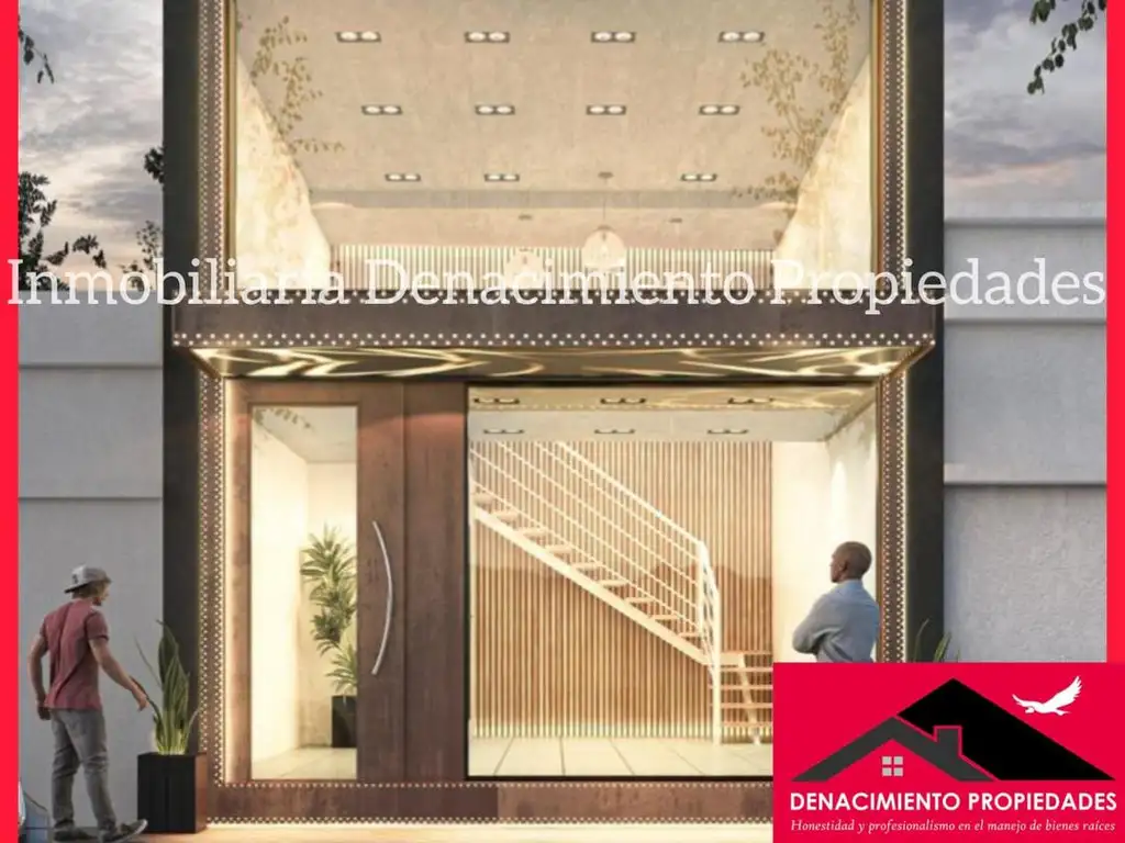 El local cuenta con una superficie total de 65 m², distribuida en 2 plantas con 6,90 mts de frente por 9,50 mts de fondo.