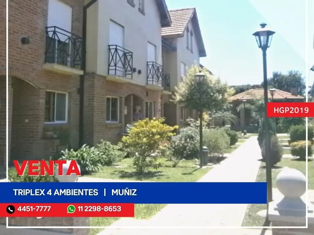 Triplex en barrio cerrado que cuenta en planta baja con cocina con bajo mesada, alacena melamina espacio para mesa, comedor, toilette , living comedor con ventana balcón al jardín con calefactor. Cochera.