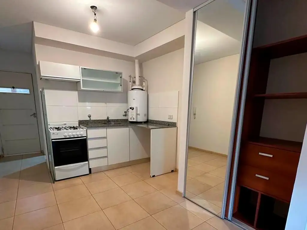 único ambiente luminoso, cocina con muebles bajo mesada y alacenas, baño completo, bajas expensas.-