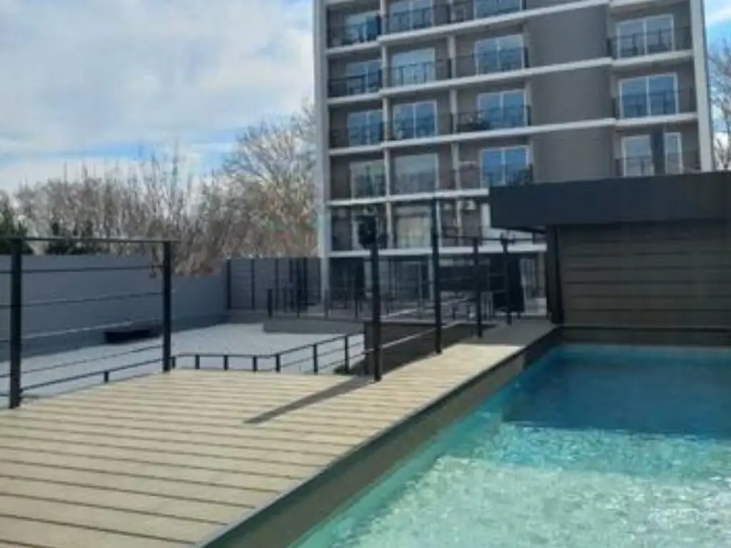 Consta de un edificio de 8 plantas. La unidad se encuentra ubicada en el 2do piso, balcón al contrafrente. Cuenta con una cocina y baño completamente equipado con mobiliario y anafe eléctrico. Posee también una mesada de mármol y una isla. Todas las terminaciones son de 1era calidad. Cuenta con aberturas de aluminio, sistema de control contra incendios, placares, puerta de ingreso reforzada, artefactos eléctricos y sistema de agua caliente.