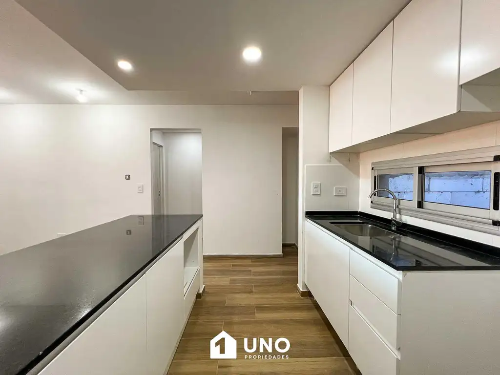 Se ingresa por la cocina, la misma se encuentra totalmente equipada y cuenta con ventilación natural, estar/comedor con salida al balcón terraza contrafrente, baño completo de recepción, íntimo con un segundo baño y dos dormitorios, ambos con placard, uno con salida al balcón.