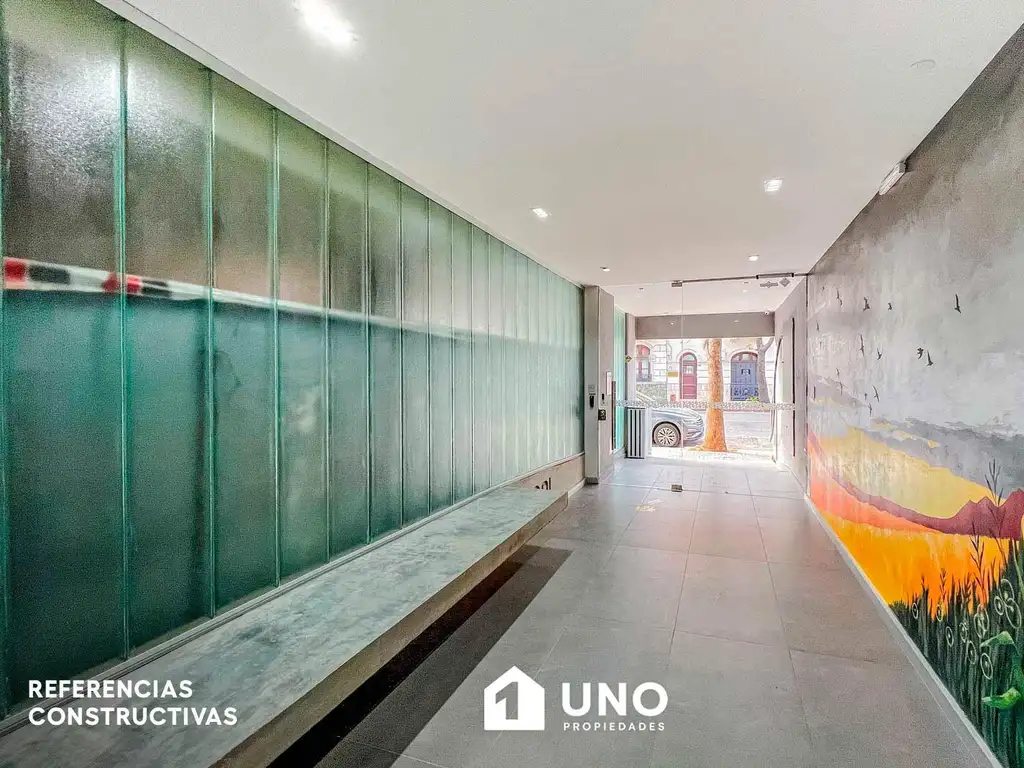 Ambiente único compuesto por la cocina totalmente equipada, con barra desayunadora y lavadero independiente, balcón terraza al contrafrente y un baño completo con ventilación natural.