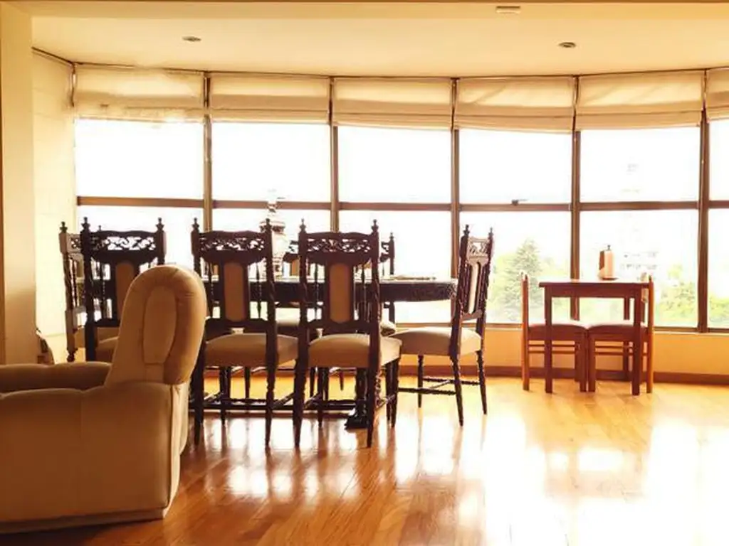 _ El mismo posee cocina con muebles sobre y bajo mesada con espacio y conexión de lavadero, integrada por una barra desayunadora al living comedor, dos baños completos, uno de ellos en suite con hidromasaje, tres dormitorios, cada uno de ellos con placard empotrado y piso de madera. Cuenta con calefacción central, aire acondicionado frío/calor en todos los ambientes y un muy amplio balcón conectado a los dormitorios en el contra frente.