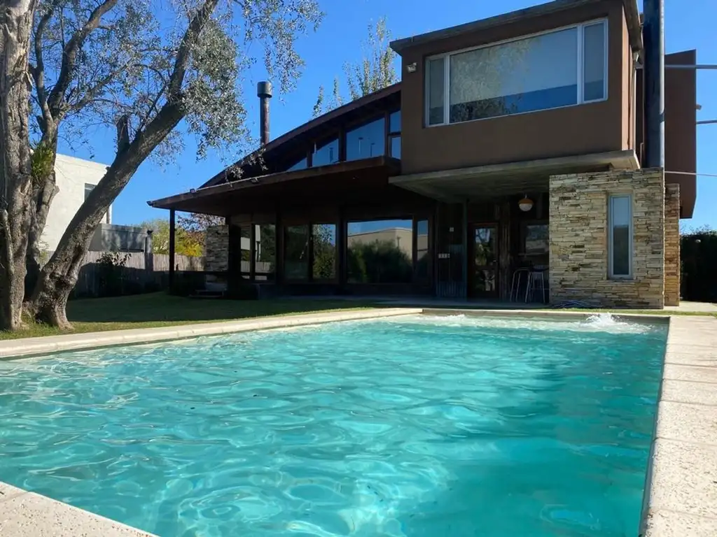 Al exterior amplia galeria con parrilla, barra con bacha, baño, espacio de guardado y bicicletero, pileta de 10 x 4 mts, climatizada por paneles solares, solarium y gran espacio verde al contrafrente parquizado con hermosa vista, espacio de huerta. Cochera cubierta para dos vehiculos y descubierta para otros dos vehiculos.
