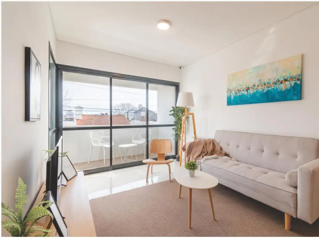La unidad, situada en el primer piso, se distribuye en un luminoso living comedor con salida al balcón, cocina equipada con mesada de granito, dormitorio con placard y baño completo con artefactos de primera línea.