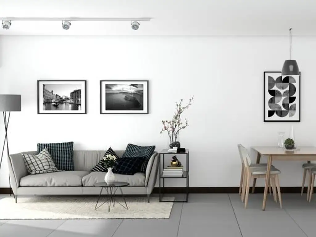 Pisos porcellanatos en estar, cocina, baño y balcón y pisos flotante en dormitorios.