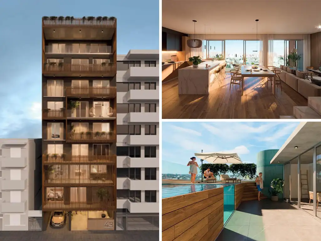 Departamentos en zona río con departamentos tipo casas con distribuciones de plantas funcionales, ambientes grandes y excelentes ventilaciones. Terminaciones de calidad enfocadas en buenos lineamientos arquitectónicos, Acondicionamiento térmico acorde con instalación de cañerías para equipos de aire acondicionado split (no incluye equipos), instalación de calefacción a través de caldera y radiadores (no incluye los equipos), muros dobles con aislación térmica 3cm alta densidad. Pisos de porcelanato en combinación con PVC 1a marca (a definir), aberturas de aluminio anodizado color natural a definir con vidrios DVH, puertas placa enchapadas en cedro o roble, placares con frentes de placar con guías de aluminio y puertas en melanina. Cocinas con bachas doble marca Jhonson Aceros, equipamiento de cocina completo con bajo mesada más alacena en MDF enchapado melamínico blanco, cantos de PVC y sistema de apertura con perfil J en aluminio anodizado natural, o similar, horno y anafe diferenciados más correcto espacio técnico para heladera y lavavajillas. Lavaderos con bachas incorporadas. Baños con loza sanitaria y griferías de primeras marcas y accesorios completo con toallero, portarrollos, jabonera y perchas. Instalación eléctrica línea Cambre Bauhaus o similar.