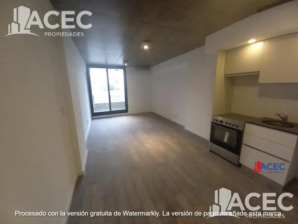 El departamento se compone de un amplio espacio único con cocina integrada, conexión para lavarropas, baño completo y balcón.