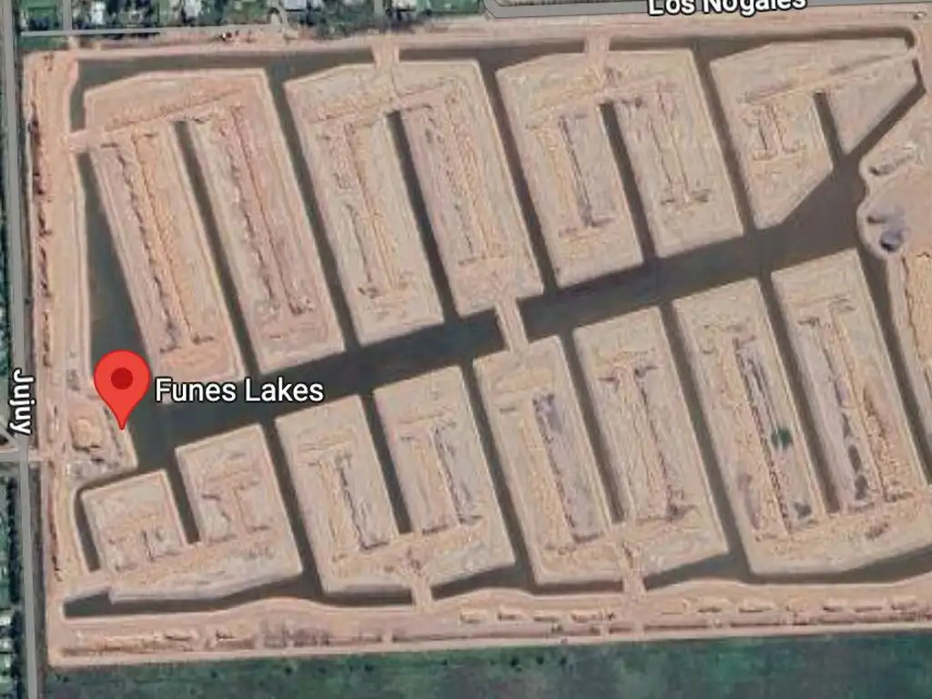 Barrio Cerrado en construcción en la zona sur de Funes, se trata de Aguadas Lakes, una urbanización con formato de archipiélago artificial.