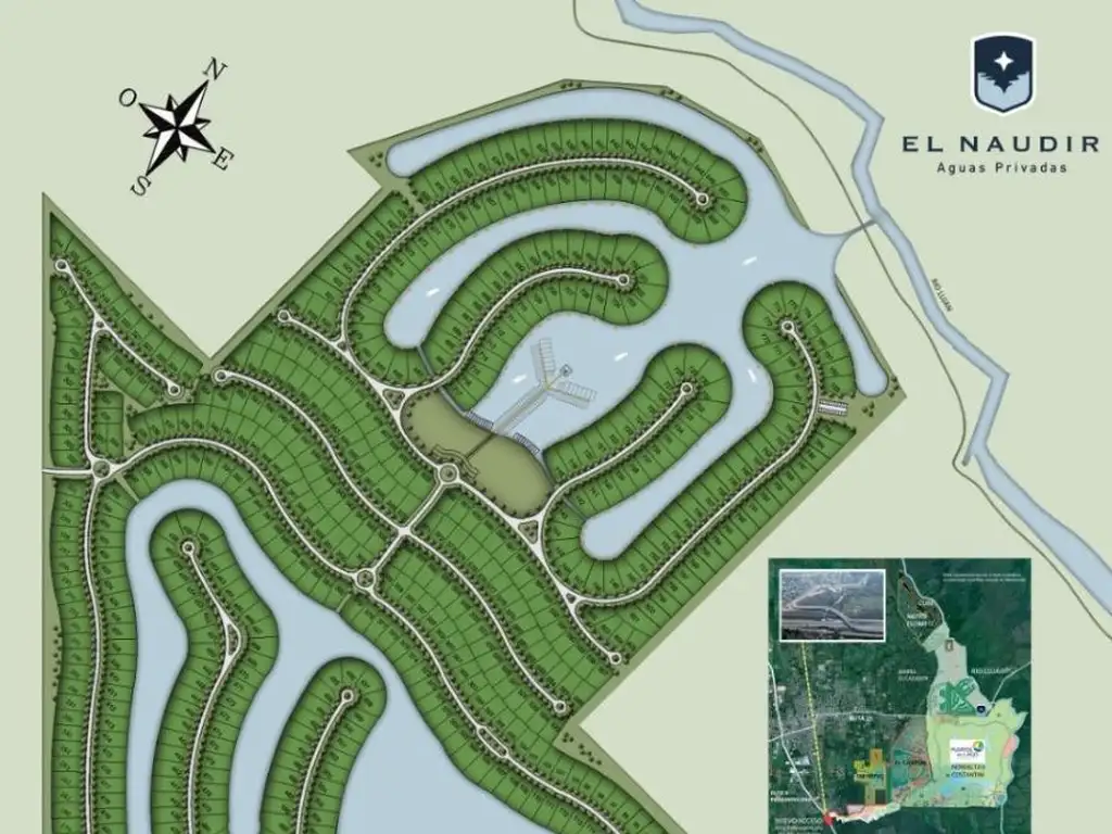 EL NAUDIR cuenta con 1025 lotes distribuidos sobre 180 hectáreas de estratégica ubicación dentro del Nuevo Cazador. Del total de sus lotes de aproximadamente 850 mts2 cada uno, un 60% de los lotes posee acceso directo al agua (lagunas internas y amarras propias) y el 40% restante son internos.