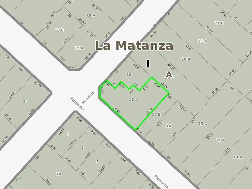 DESCRIPCION: 20 MTS DE FRENTE X 21 MTS DE FONDO - LOTE IRREGULAR
