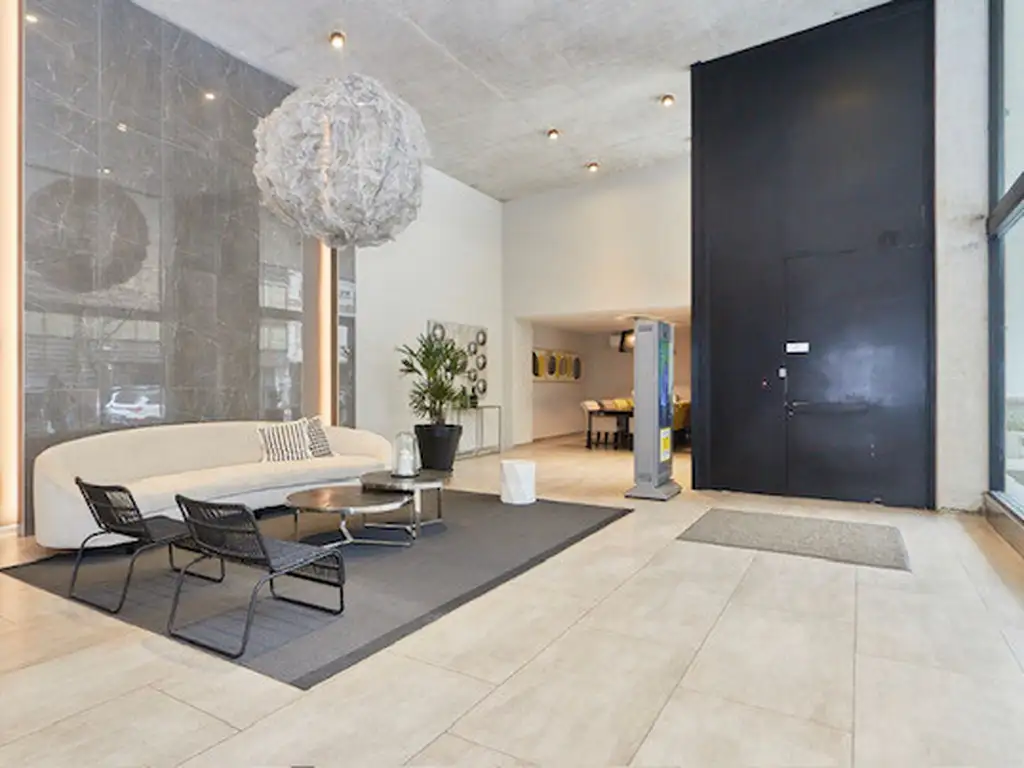 Departamento full amoblado de 2 ambientes a estrenar con balcón, parrilla y terraza con piscina propia. Cochera. Amplio living comedor con salida a balcón terraza y parrilla. Cocina integrada. Un dormitorio en suite. Espectacular terraza con piscina propia. Amoblamiento y equipamiento: Living: mesa de madera laqueada en blanco medidas 1,2 x80cm con 4 sillas Eames blancas. Sillón de modelo Ghost tapizado en lienzo con funda lavable con carro c/colchón 1,90 x 80 cm... Led tv 43’. Cocina: Anafe y horno eléctrico, heladera con freezer, microondas y lavarropas automático. Balcón: Dormitorio: dos Sommiers marca Piero modelo de 90 por 190 cm.con pillow para hacer cama 2 plazas de 190 x 180 cm. Vestidores con cajonera. Terraza: living con juego de sillones Mesa rectangular con 6 sillas. El edificio cuenta con pileta, solárium y jardín.Zona se encuentra una gran oferta gastronómica, comercial