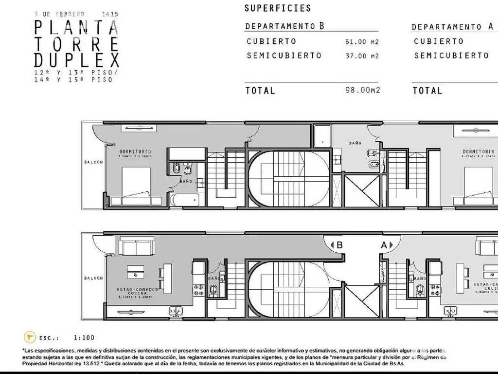 Todas las imágenes, planos, descripciones, y características indicadas son meramente referenciales e ilustrativas y podrán ser modificadas sin previo aviso. Las superficies indicadas son estimadas. Las superficies y medidas definitivas surgirán del plano de mensura final aprobado oportunamente por el GCBA. Las fechas de inicio de obra o posesión son estimadas, podrán ser reprogramadas por la Dirección de obra y dependerán a su vez de un proceso de aprobaciones municipales u otros organismos intervinientes. Los precios indicados podrán modificarse sin previo aviso. El interesado deberá realizar las verificaciones respectivas previamente a la realización de cualquier operación, requiriendo por sí o sus profesionales las copias necesarias de la documentación que corresponda.