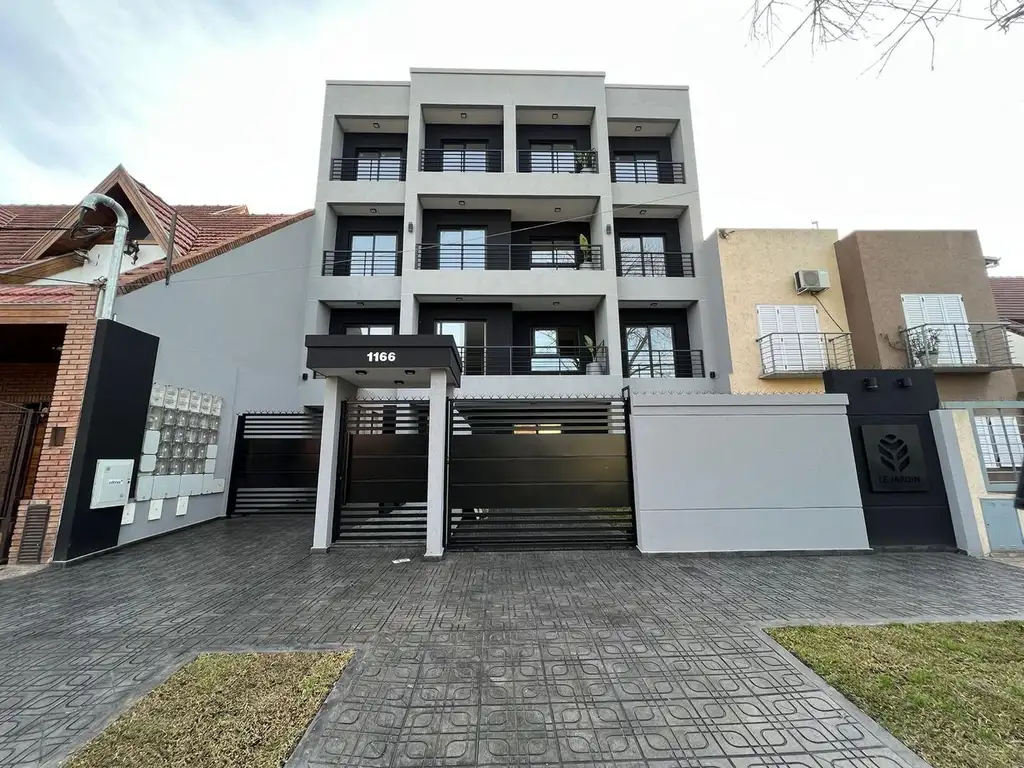 En venta hermosa unidad en planta baja al frente dentro del complejo "Le Jardin" sobre la calle Rawson entre las de Pellegrini y Sarmiento, hermosa zona residencial de merlo.