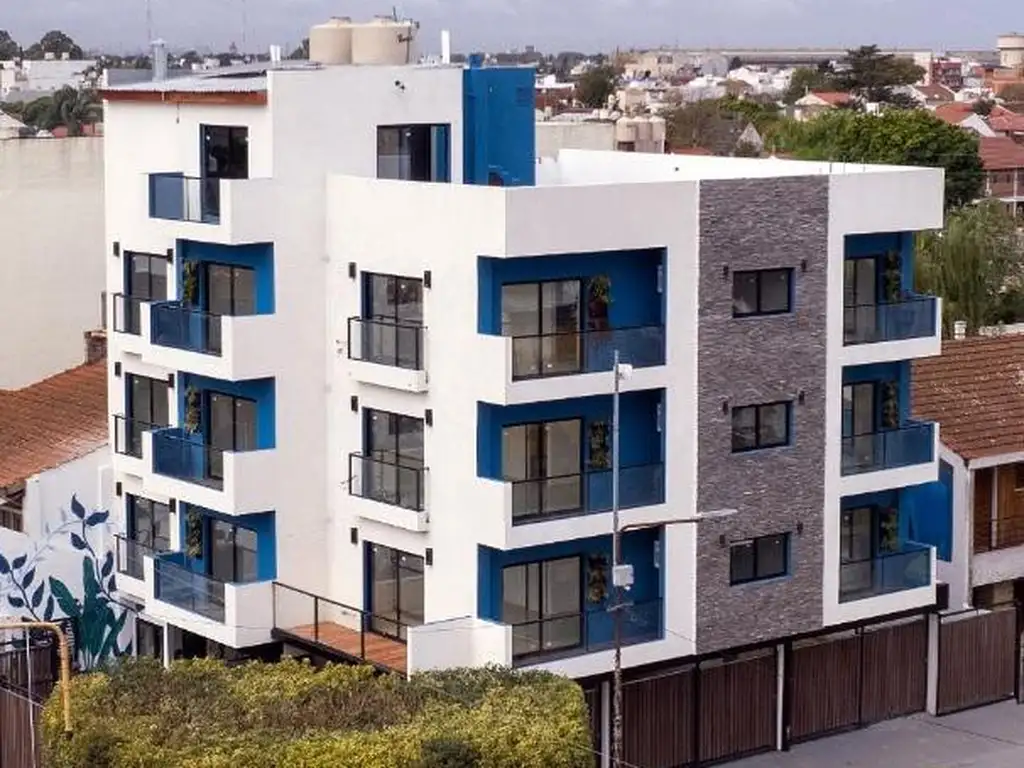 El edificio cuenta con amenities en terraza como S.U.M., sector de parrilla y esparcimiento, toilette. Los departamentos se caracterizan por sus amplios balcones de vidrio laminados, aberturas de aluminio anodizado negro, pisos de porcelanato, griferías monocomando, sanitarios línea blanca y portero visor eléctrico en todas las unidades.