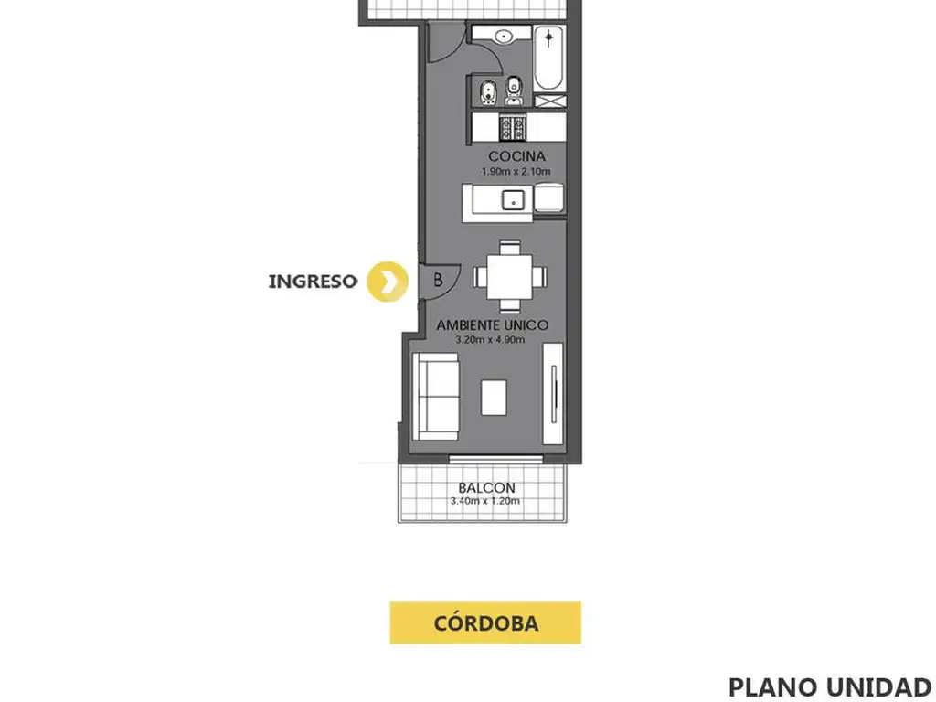 Departamento monoambiente. Ventilación cruzada. - Rosario