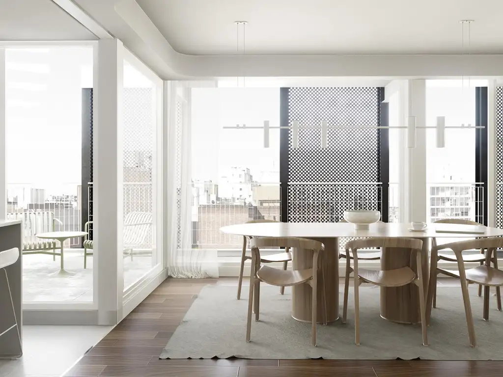 Tipología y distribución: Piso exclusivo. Ingreso a hall distribuidor hacia cocina amplia con espacio para comedor diario, lavadero separado. Ambiente contiguo sector de comedor principal y living (de gran dimensión) que posee salida a balcón. Baño completo con bañera. Dormitorios placard. Dormitorio principal en suite con vestidor. Todos los ambientes con salida a balcón teniendo muy buena iluminación natural constantemente.
