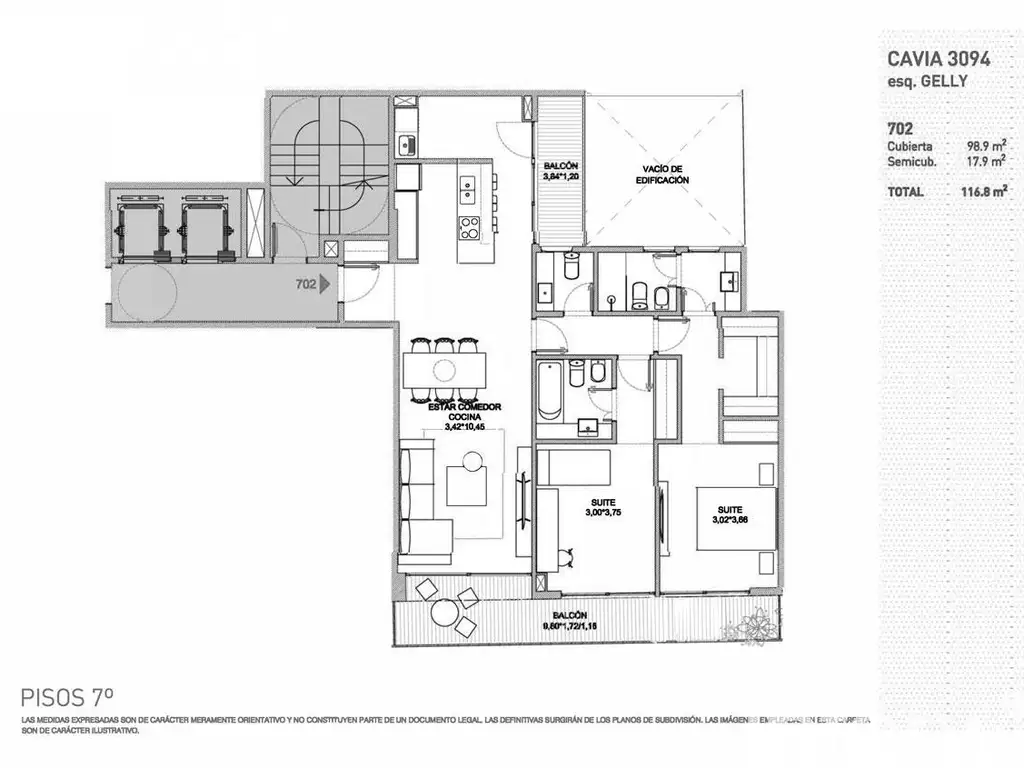 Todas las imágenes, planos, descripciones, y características indicadas son meramente referenciales e ilustrativas y podrán ser modificadas sin previo aviso. Las superficies indicadas son estimadas. Las superficies y medidas definitivas surgirán del plano de mensura final aprobado oportunamente por el GCBA. Las fechas de inicio de obra o posesión son estimadas, podrán ser reprogramadas por la Dirección de obra y dependerán a su vez de un proceso de aprobaciones municipales u otros organismos intervinientes. Los precios indicados podrán modificarse sin previo aviso. El interesado deberá realizar las verificaciones respectivas previamente a la realización de cualquier operación, requiriendo por sí o sus profesionales las copias necesarias de la documentación que corresponda.