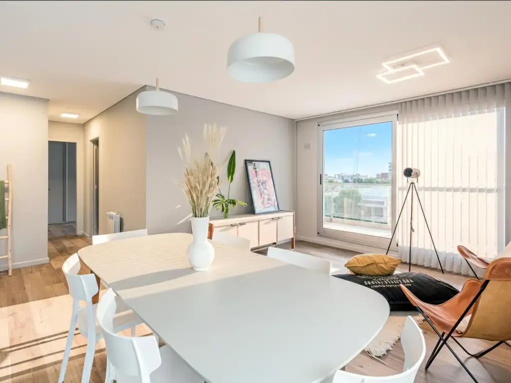 Ingreso por living comedor con salida al balcón corrido hacia calle Mendoza que abarca todo el frente del departamento con accesos al balcón por el living y por ambos dormitorios. Cocina integrada. Domitorio principal con baño en suite y un segundo dormitorio también con ventana y salida al balcón. Baño principal completo con ducha. Opción cocheera en el edificio. Detalles de terminaciones de primera calidad.